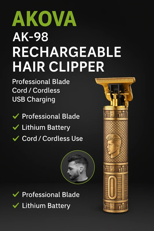 ? AKOVA AK-98 Rechargeable Hair Clipper – مصممة لتمنحك حلاقة دقيقة واحترافية في أي وقت.